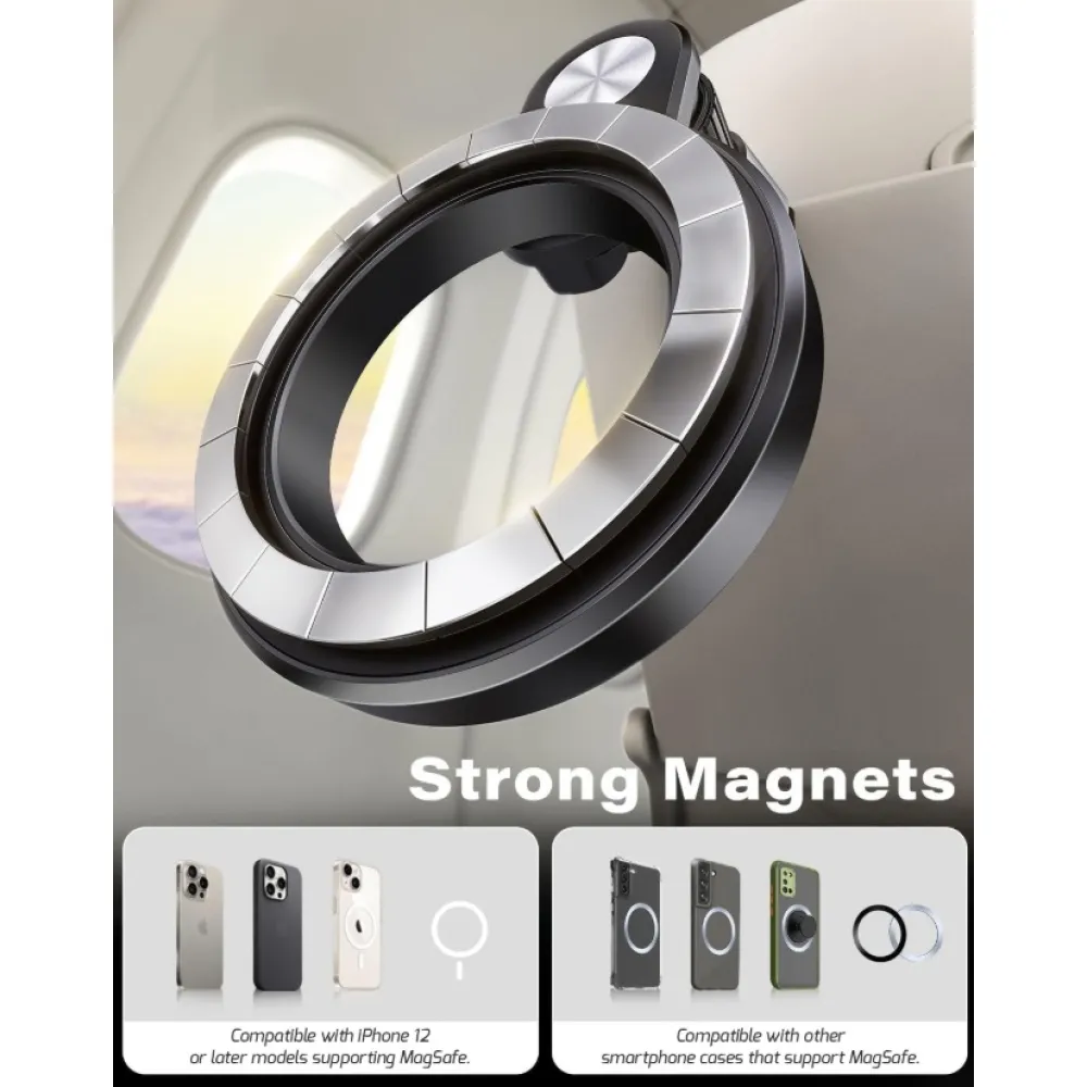 Univerzální MagSafe držák SWISSTEN je ideální řešení pro pohodlné sledování obsahu a hands-free používání telefonu doma i na cestách. Díky silným magnetům s MagSafe kompatibilitou udrží iPhone bezpečně na místě, ať už jej připevníte na poličku v kuchyni, opěrku sedadla v letadle, pracovní desku v dílně nebo jiný rovný povrch. Kompaktní design s pevným uchycením a měkkými silikonovými vložkami zajišťuje stabilitu a ochranu proti poškrábání.