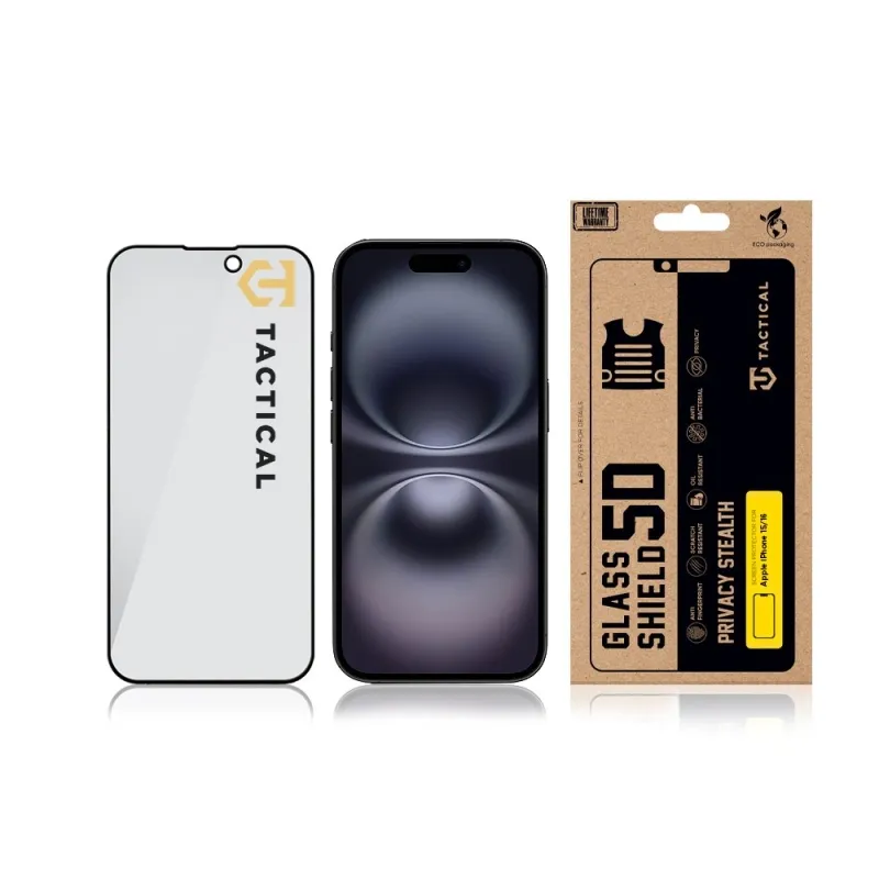 Ochranné sklo Tactical Glass Shield Privacy Stealth chrání Tvé zařízení před nejdrsnějšími střety a obsah displeje před šmíráky.