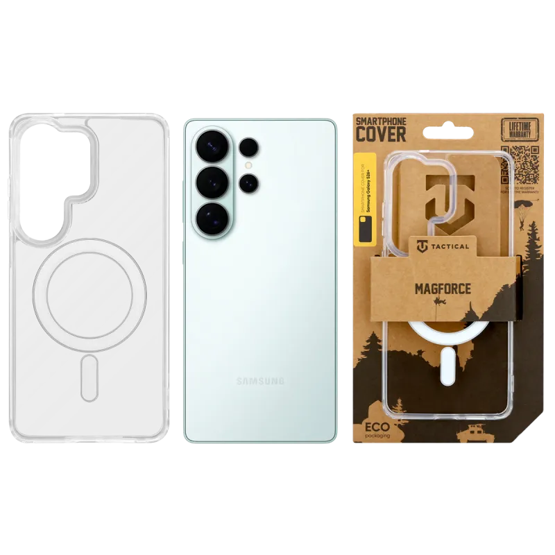 Tactical MagForce je tenký čirý PC/TPU kryt na záda telefonu. Je vyrobený z dokonale čirého pružného silikonového materiálu a je dodáván v ekologickém balení z recyklovaného papíru.