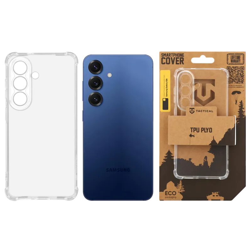 Tactical TPU PLYO tenký čirý TPU kryt na záda telefonu se zesílenými rohy pro maximální odolnost při pádu, ale i běžném nošení. Je vyrobený z dokonale čirého pružného silikonového materiálu a je dodáván v ekologickém balení z recyklovaného papíru.