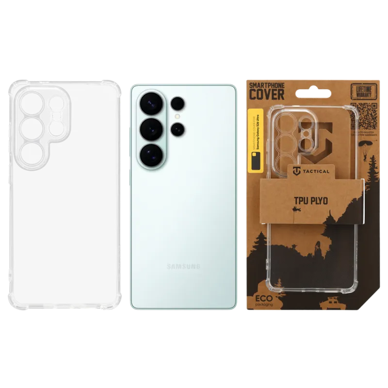 Tactical TPU PLYO tenký čirý TPU kryt na záda telefonu se zesílenými rohy pro maximální odolnost při pádu, ale i běžném nošení. Je vyrobený z dokonale čirého pružného silikonového materiálu a je dodáván v ekologickém balení z recyklovaného papíru.