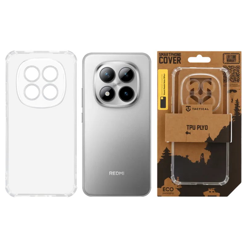 Tactical TPU PLYO tenký čirý TPU kryt na záda telefonu se zesílenými rohy pro maximální odolnost při pádu, ale i běžném nošení. Je vyrobený z dokonale čirého pružného silikonového materiálu a je dodáván v ekologickém balení z recyklovaného papíru.
