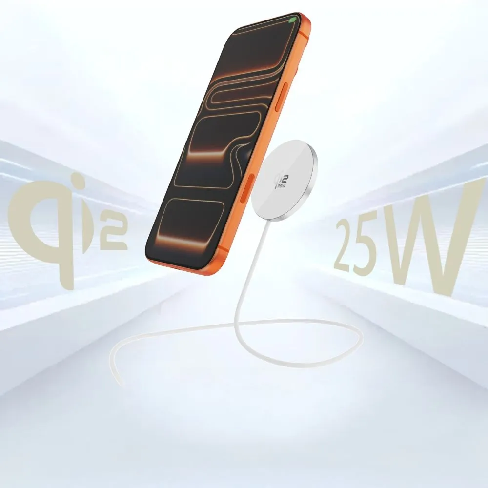 Nabíječka podporuje moderní standard Qi2.2, který přináší efektivnější a rychlejší bezdrátové nabíjení. Maximální výkon až 25 W umožňuje výrazně zkrátit dobu dobíjení u kompatibilních zařízení, přičemž je zachována bezpečnost a stabilita.