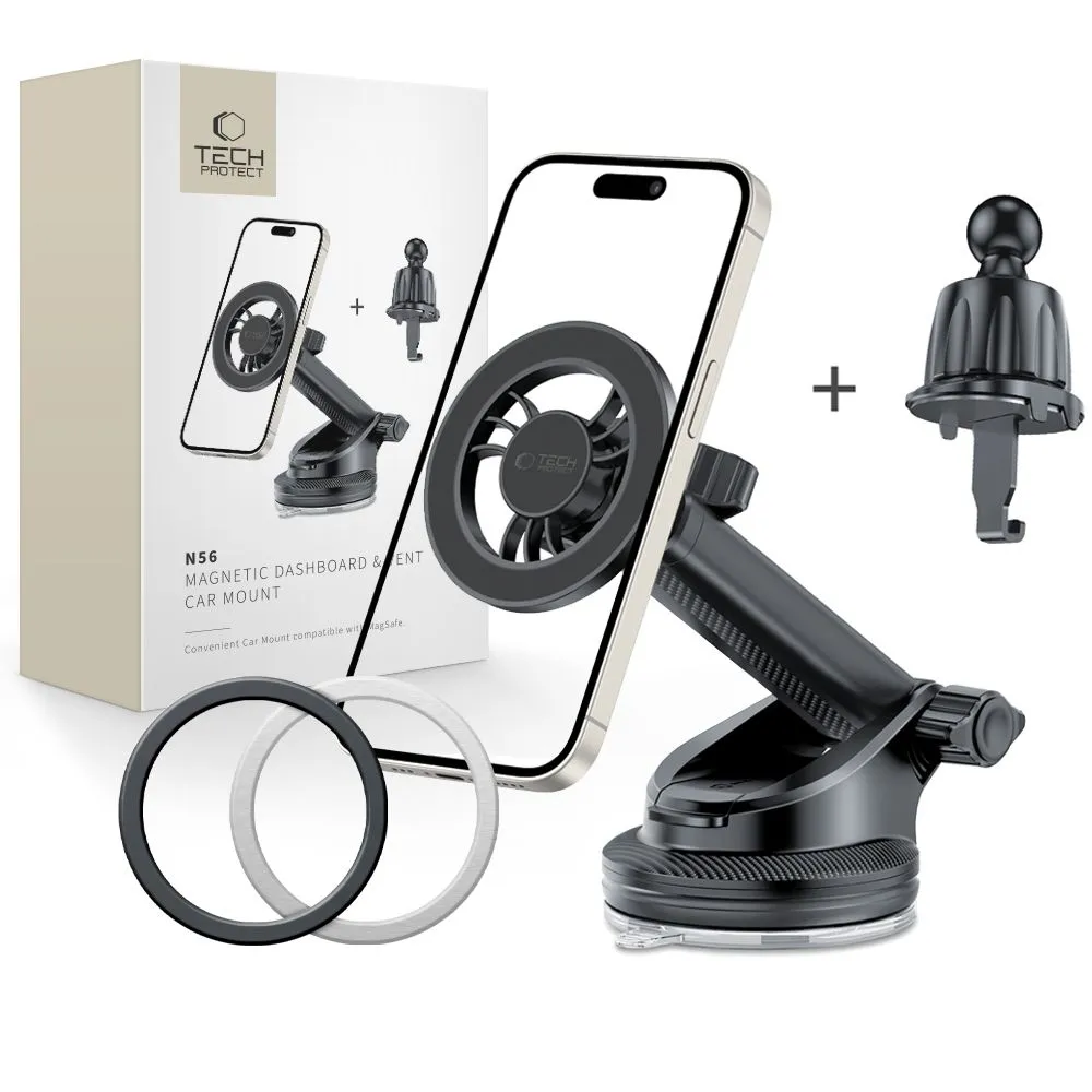 Tech-Protect N56 je univerzální držák do auta s podporou MagSafe, který nabízí rychlé a pohodlné uchycení telefonu bez zbytečné manipulace. Díky silným magnetům stačí zařízení jednoduše přiložit a držák jej okamžitě zajistí v ideální poloze, což oceníte při každodenním používání během jízdy.