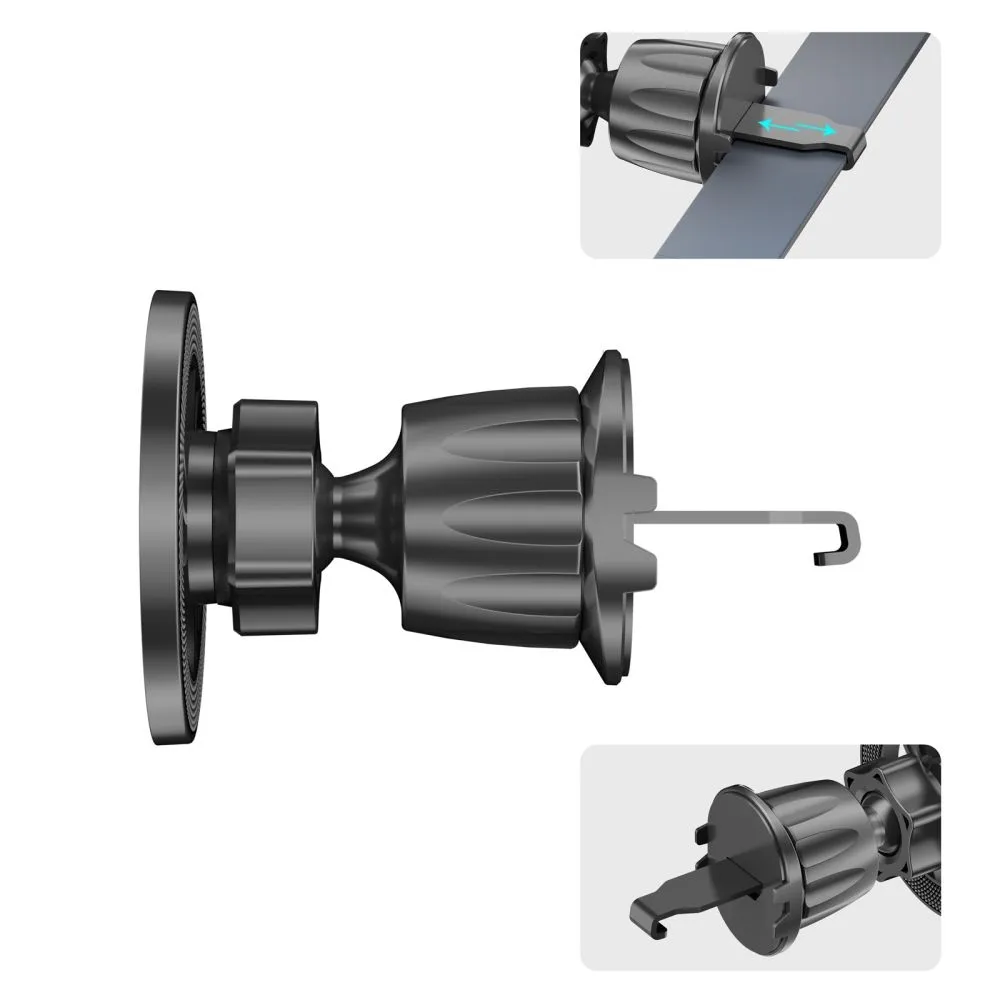 Díky 360° otočné hlavici si snadno nastavíte ideální úhel pro navigaci, hovory i sledování notifikací. Držák nabízí maximální flexibilitu použití, protože jej lze upevnit na palubní desku, čelní sklo nebo ventilační mřížku. Stabilitu na hladkých plochách zajišťuje silná přísavka s aretačním mechanismem, zatímco háčkový adaptér pevně drží ve ventilaci.