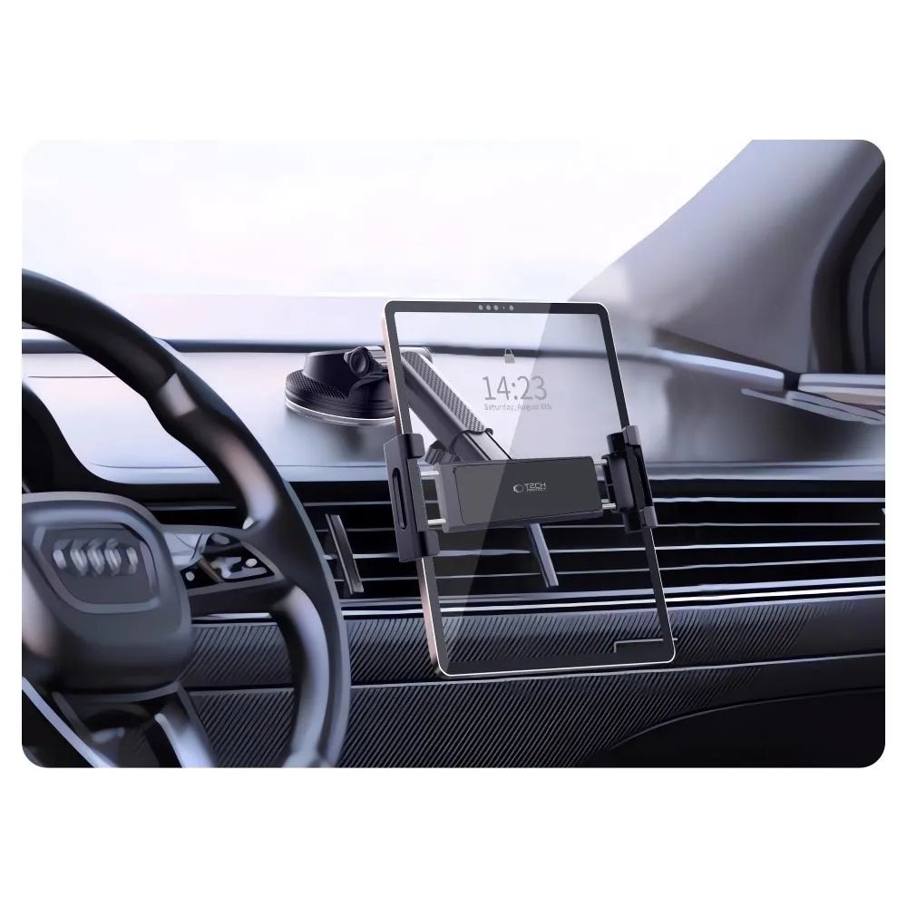 Tech-Protect V4 je praktický a spolehlivý držák na tablet do auta, který zajistí bezpečné uchycení zařízení během každé jízdy. Díky silné přísavce jej snadno upevníte na palubní desku nebo čelní sklo a získáte tak ideální pozici pro sledování displeje bez omezení výhledu.