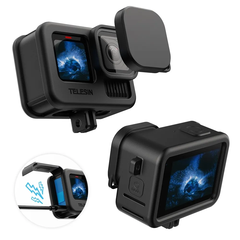 TELESIN S6-PTC-010-TGP silikonové ochranné pouzdro s krytkou objektivu pro GoPro Hero 13/12/11/10/9 je praktické příslušenství navržené pro ochranu kamery před nárazy, poškrábáním a prachem při každodenním používání i sportovních aktivitách. Měkký a pružný silikon přesně obepíná tělo kamery a poskytuje spolehlivou ochranu bez omezení přístupu k tlačítkům, displeji nebo portům.