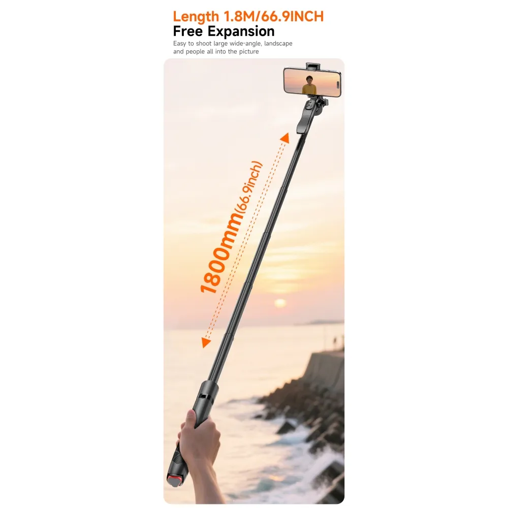Multifunkční selfie tyč L16-TT kombinuje výsuvnou hliníkovou konstrukci s automaticky rozkládacím stativem. Umožňuje stabilní natáčení, panoramatické snímání i pohodlné vlogování bez nutnosti držet zařízení v ruce. Díky robustní konstrukci z ABS a hliníkové slitiny nabízí pevnost, stabilitu a dlouhou životnost.