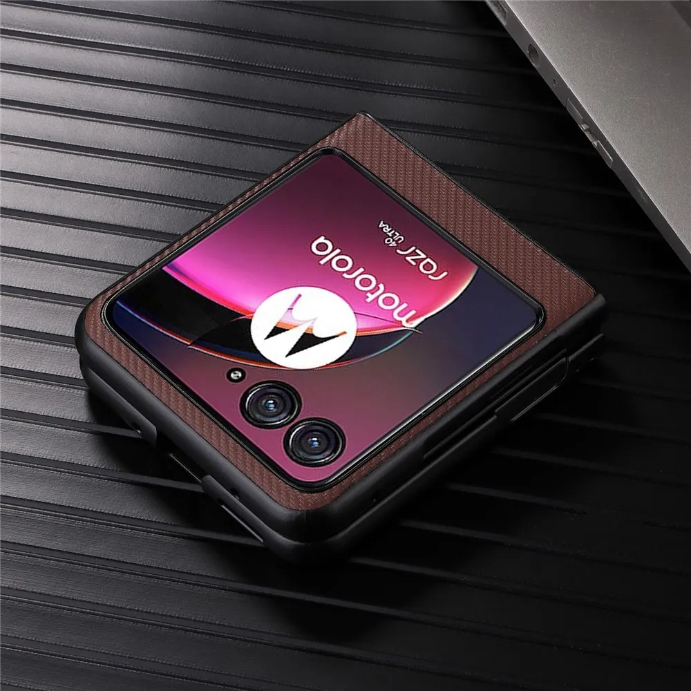 Textury plastový kryt s umělou kůží na Motorola Razr 40 Ultra 5G - hnědý