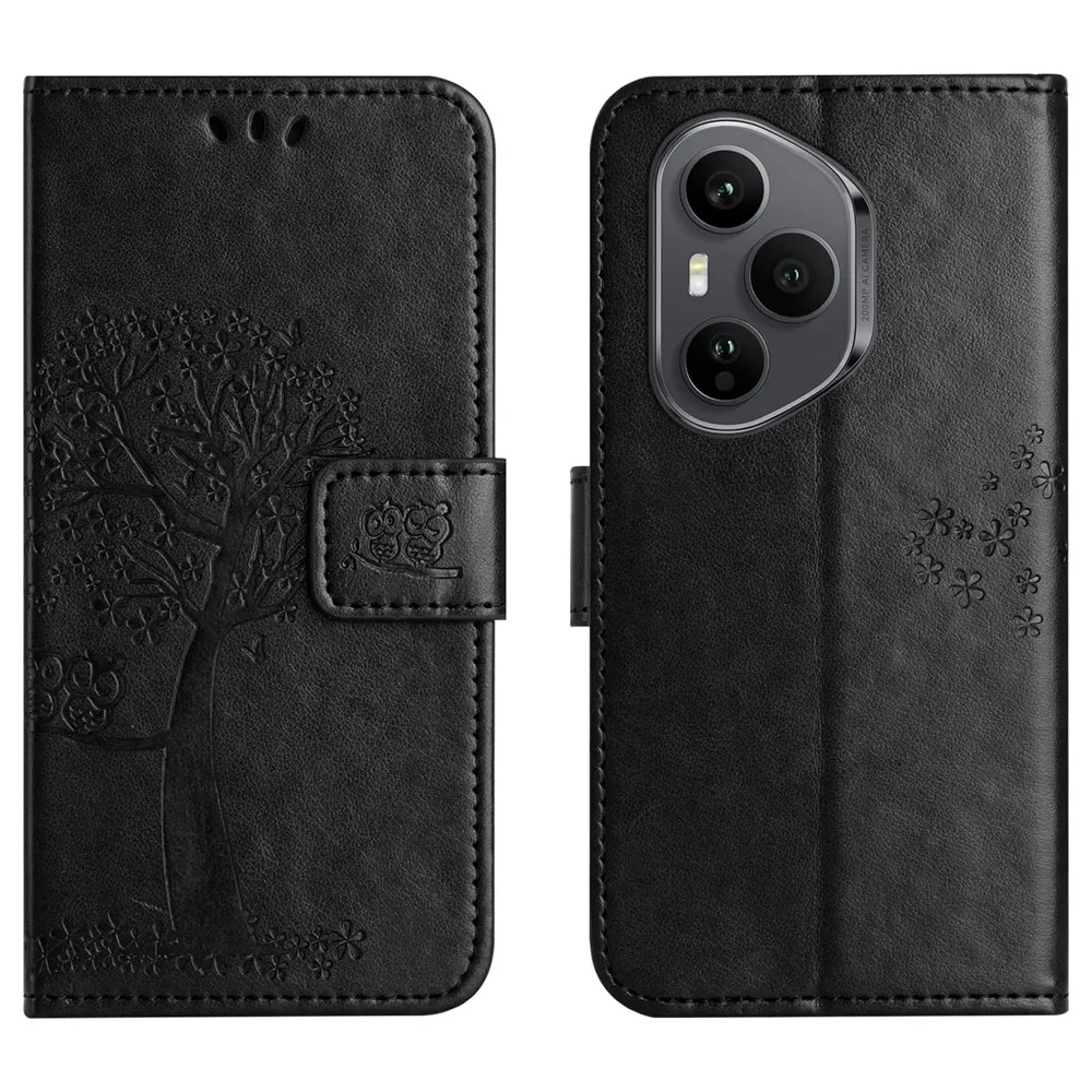 Černé peněženkové pouzdro Tree na mobil Honor 400 Pro