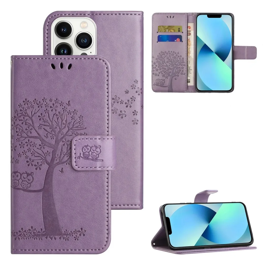 Světlefialové peněženkové pouzdro Tree na iPhone 15 Pro Max