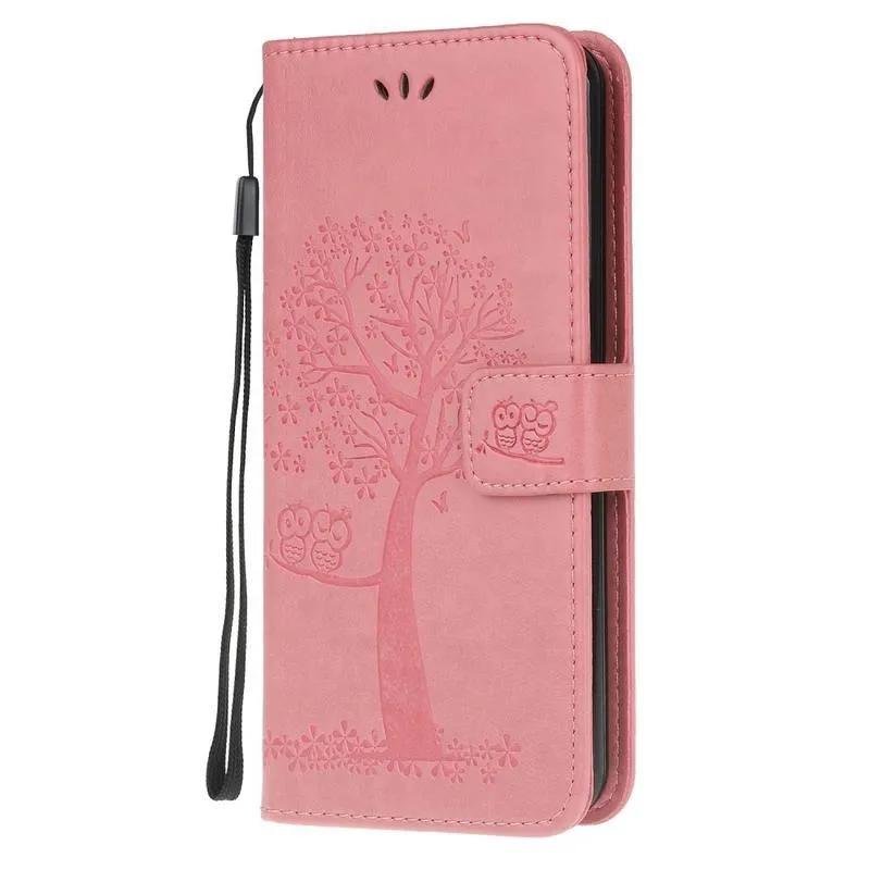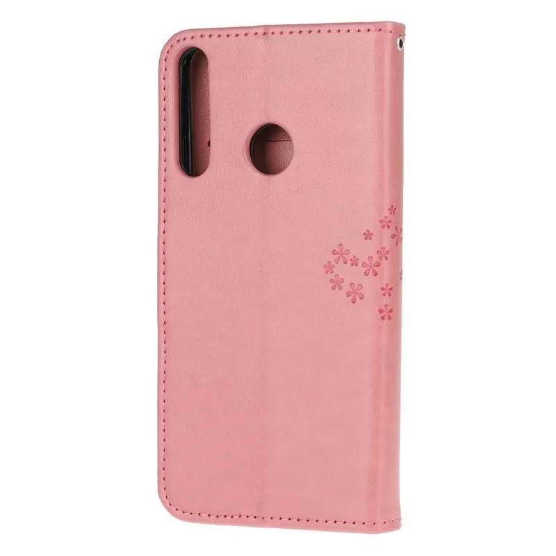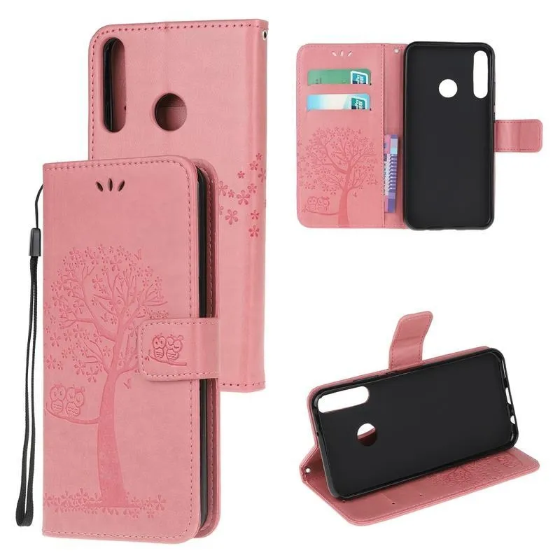 Tree PU kožené peněženkové pouzdro na mobil Huawei P40 Lite E - růžové