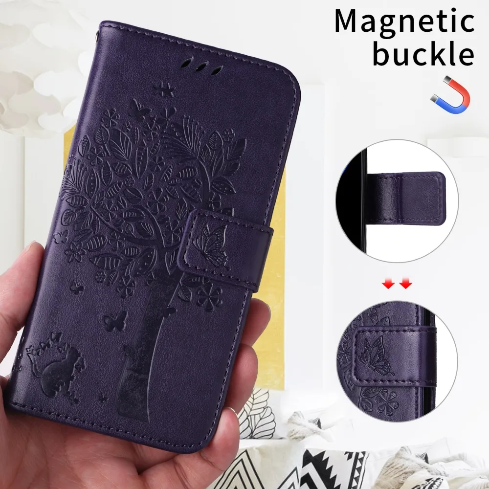 Tmavěfialové peněženkové pouzdro Trees na mobil Samsung Galaxy A57 5G