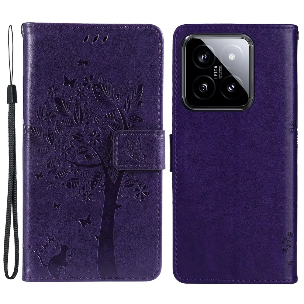 Tmavěfialové peněženkové pouzdro Trees na Xiaomi 14