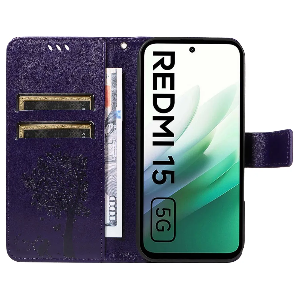 Fialové peněženkové pouzdro Trees na mobil Xiaomi Redmi 15 4G (171mm)