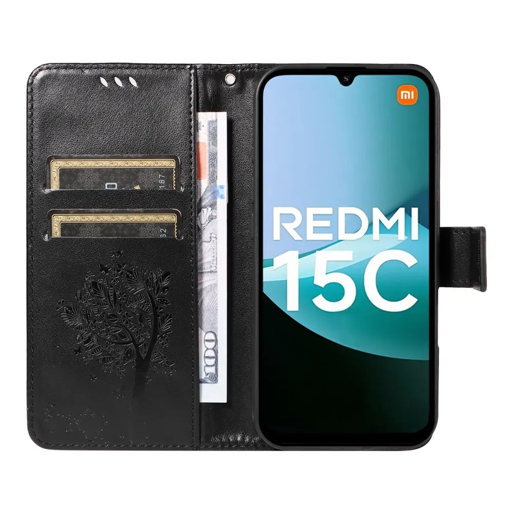 Černé peněženkové pouzdro Trees na mobil Xiaomi Redmi 15C 4G (171mm)/Poco C85 4G (171mm)