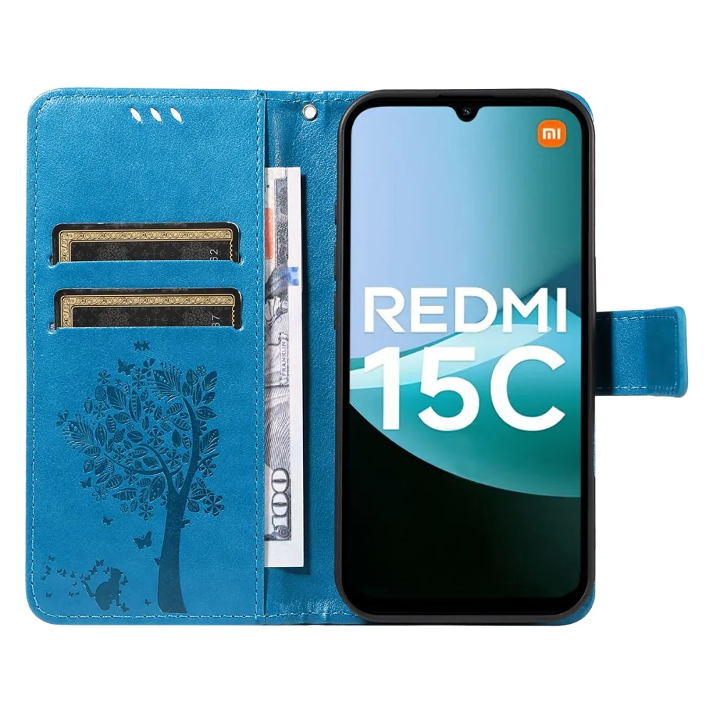 Modré peněženkové pouzdro Trees na mobil Xiaomi Redmi 15C 4G (171mm)/Poco C85 4G (171mm)