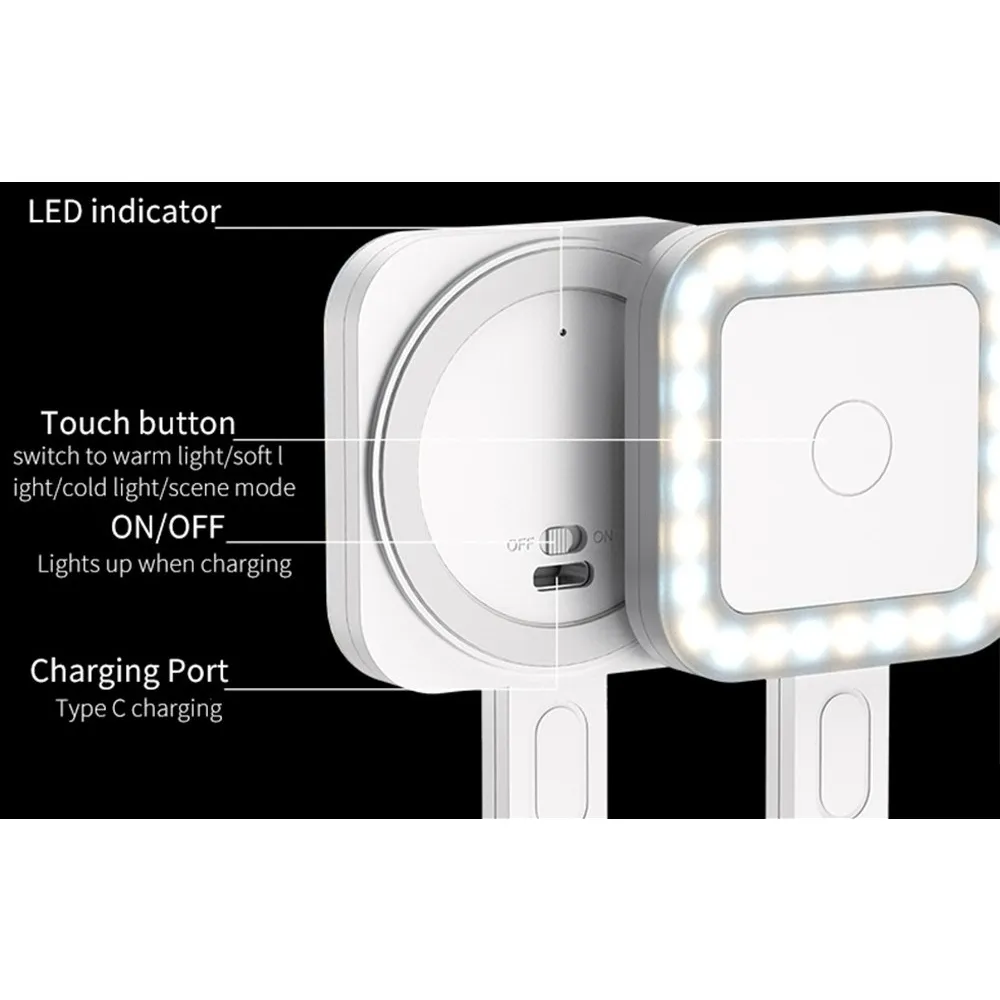 Výkon: max. 3 W Teplota světla: 2500K – 9000K Počet LED: 30 Jas: 240 lux CRI: ≥ 95 Kapacita baterie: 300 mAh Doba nabíjení: cca 1,5 hodiny Nabíjení: USB-C (5V / 300 mA) Dosah osvětlení: cca 0,5 m Hmotnost: 45 g Rozměry: 60 × 90 × 15,5 mm