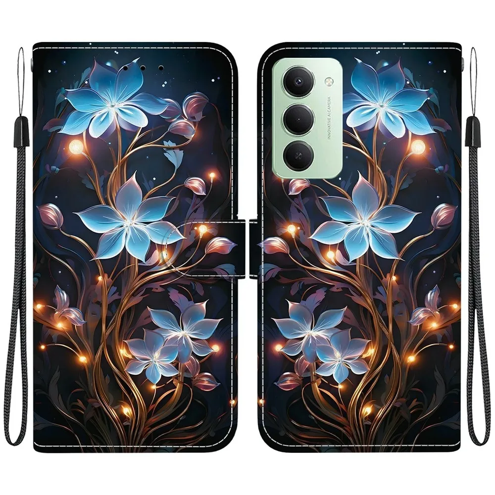 ✅【Vysoce kvalitní materiály】 Pouzdro Versatile s motivem modré květy na mobil Xiaomi Redmi 15 4G (171mm) je vyrobeno z umělé kůže v kombinaci s TPU se zářivým vzorem
