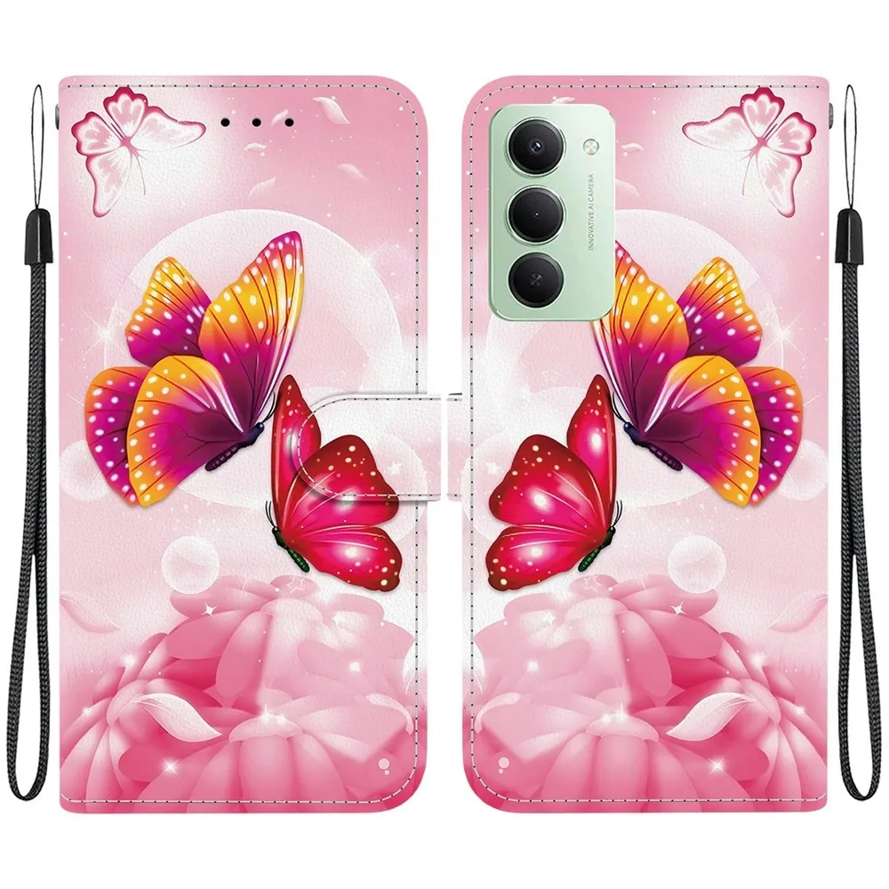 ✅【Vysoce kvalitní materiály】 Pouzdro Versatile s motivem růžoví motýli na mobil Xiaomi Redmi 15 4G (171mm) je vyrobeno z umělé kůže v kombinaci s TPU se zářivým vzorem
