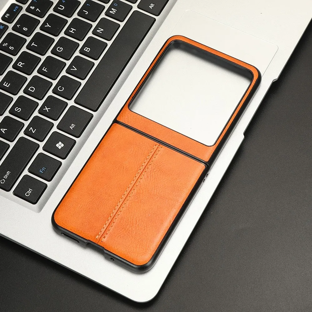 Vintages plastový kryt s umělou kůží na Motorola Razr 40 Ultra 5G - oranžový