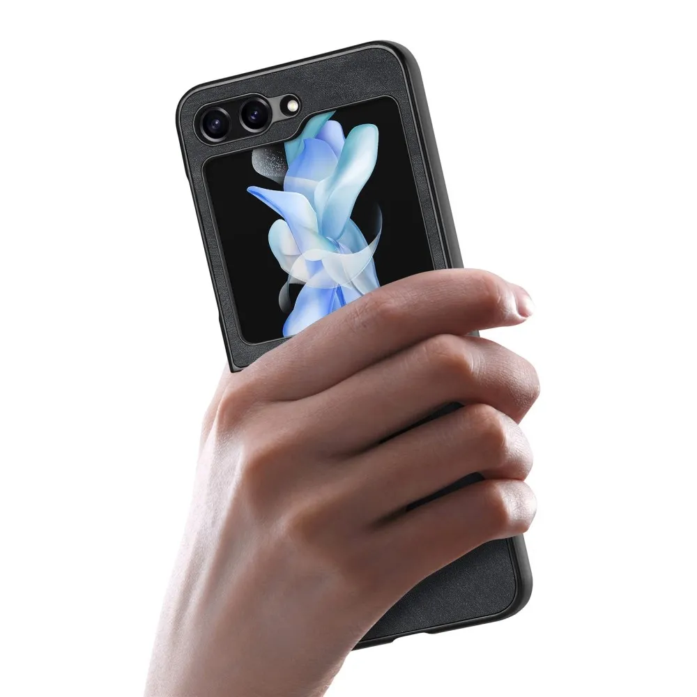 Vintage plastový kryt s umělou kůží na Samsung Galaxy Z Flip6 5G/ Z Flip7 FE 5G - černý