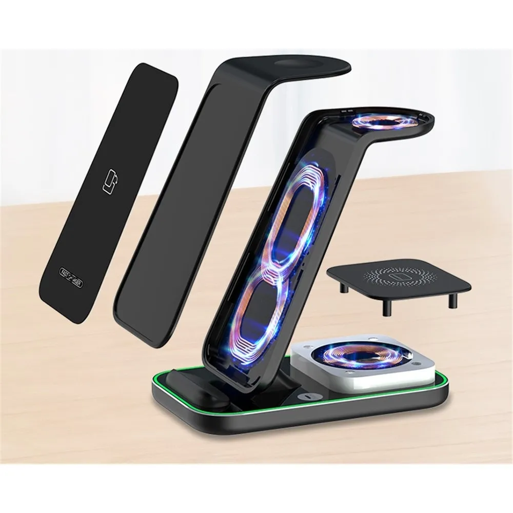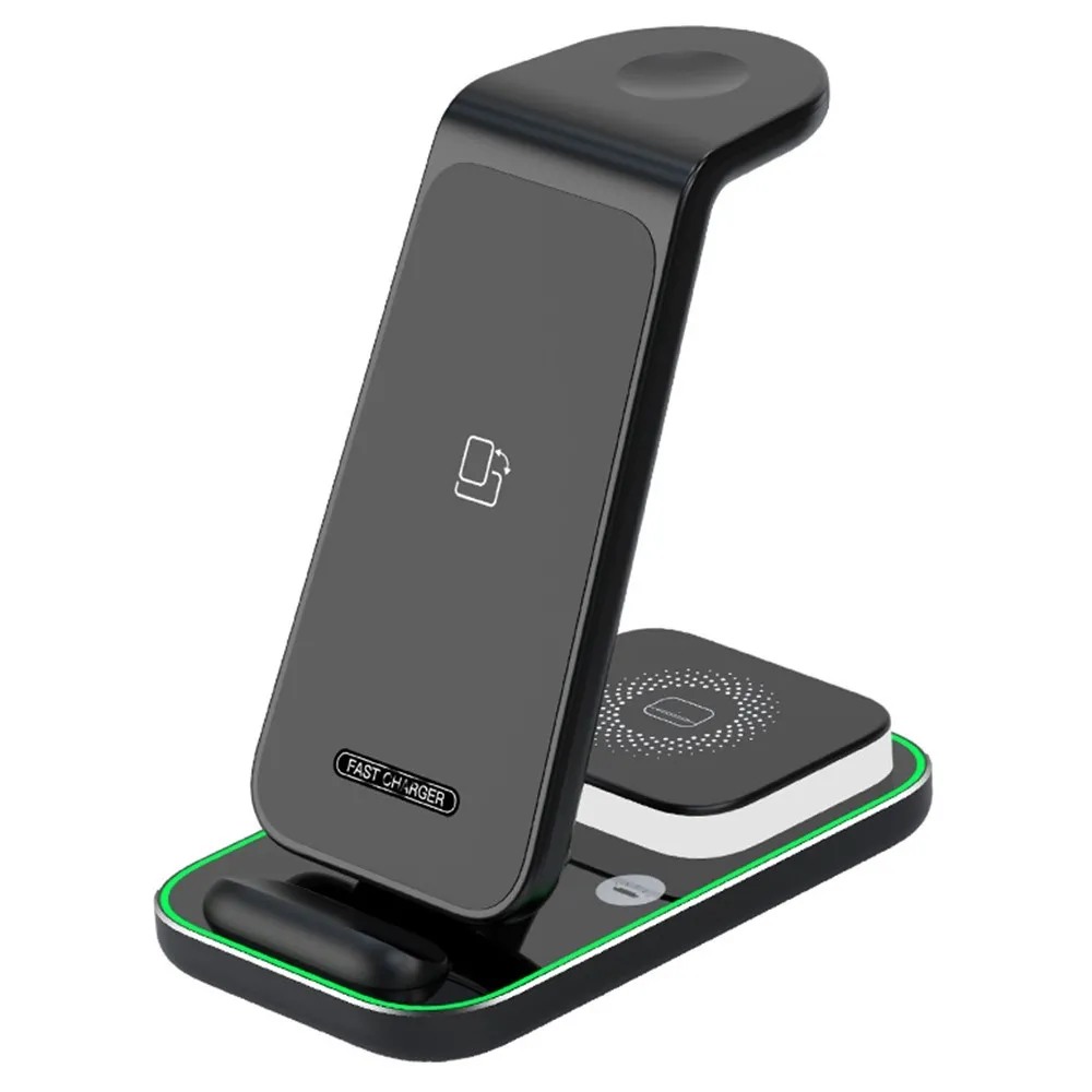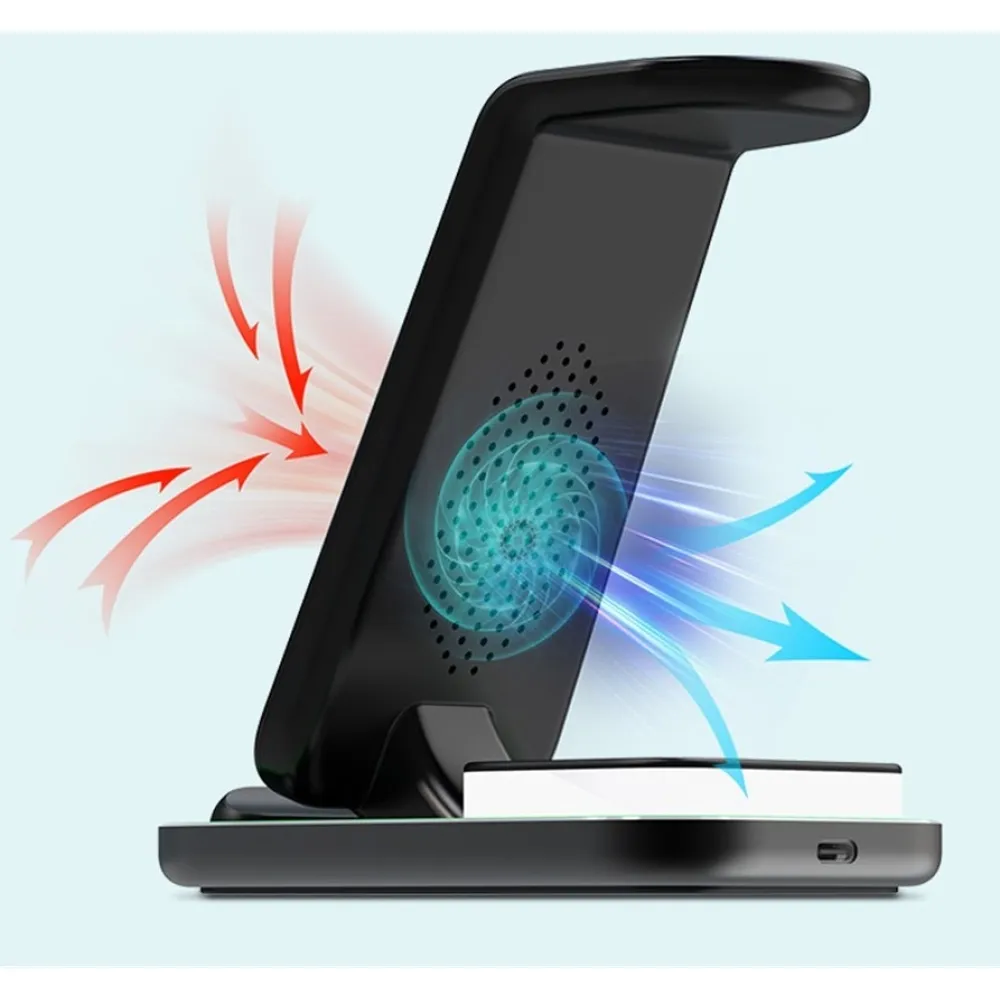 YF-A6 bezdrátová nabíjecí stanice 3v1 s nočním světlem a duální cívkou je praktické řešení pro současné nabíjení více zařízení. Umožňuje pohodlné nabíjení mobilního telefonu, bezdrátových sluchátek a Apple Watch na jednom místě bez zbytečných kabelů.