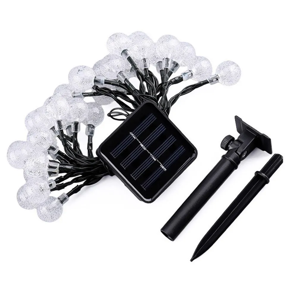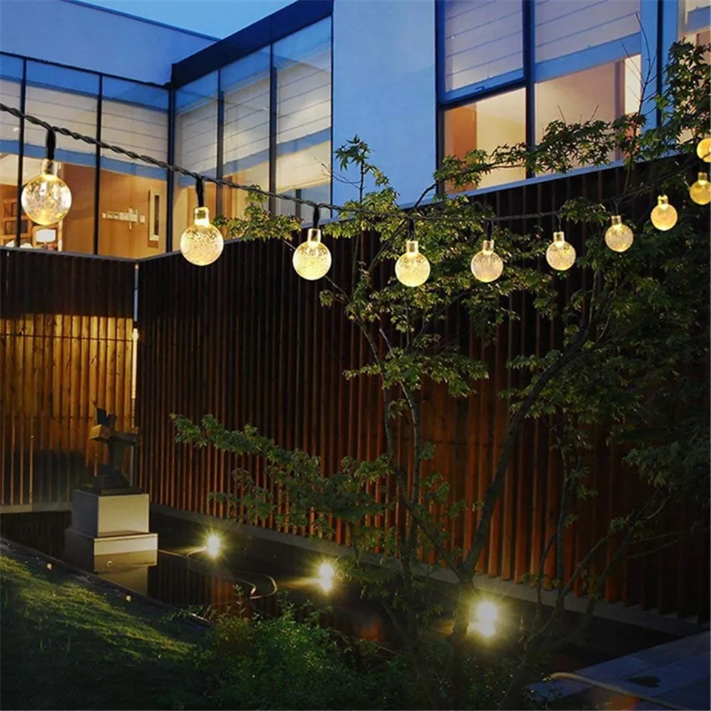Krystalové koule působí elegantně a rozptylují světlo do příjemného efektu. Venkovní LED řetěz na solární pohon je vhodný pro dekoraci pergol, plotů, stromů i altánů a dodá prostoru stylový a slavnostní vzhled.